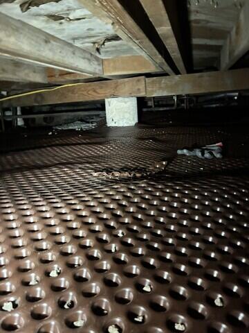 First, our team applied Mold-X2 mold killer and stain remover to all the beams, base plates, floor joists, subfloor, and wooden building materials in the crawl space. Next, we installed a SmartPipe perimeter drainage system in crawl space, along with a SmartSump pump system with liner, cast iron pump, CleanPump Stand, airtight lid with an airtight floor drain, and WaterWatch alarm system. We then used CleanSpace drainage matting, along with a CleanSpace vapor barrier to prevent any more moisture issues.