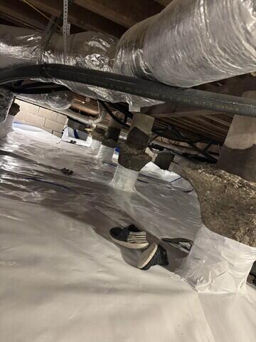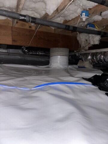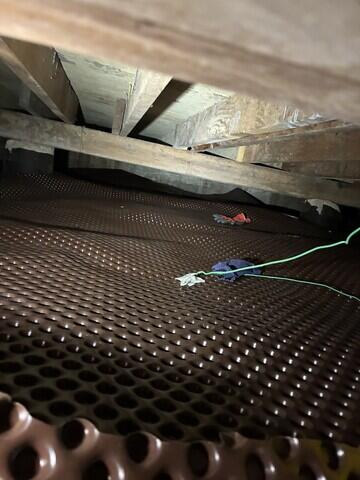 When adding an addition to their home, this couple decided encapsulation would be the best way to protect their new wood floors. A sump pump was installed, along with a dehumidifier. Two wireless sensors were placed to send temperature and humidity readings to a small panel inside the house. Next, CleanSpace Drainage matting was installed and a CleanSpace liner was placed on top. Silverglo insulation was fastened along the inside perimeter of the entire crawl space. Afterward, the vents were closed to ensure no more moisture or condensation were allowed to penetrate the crawl space.