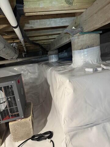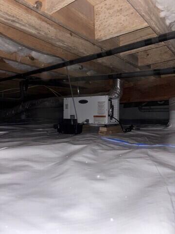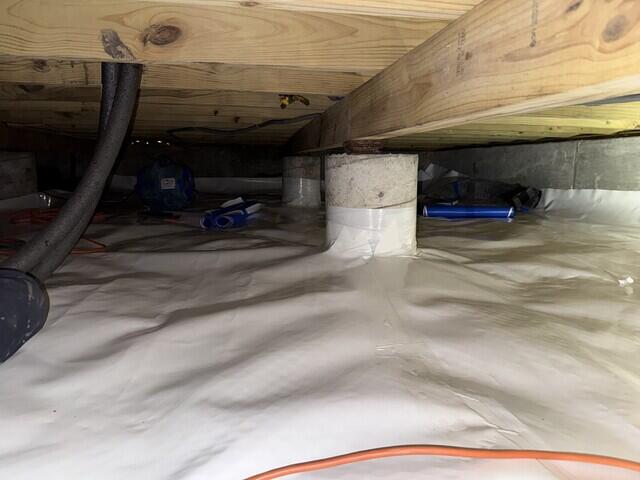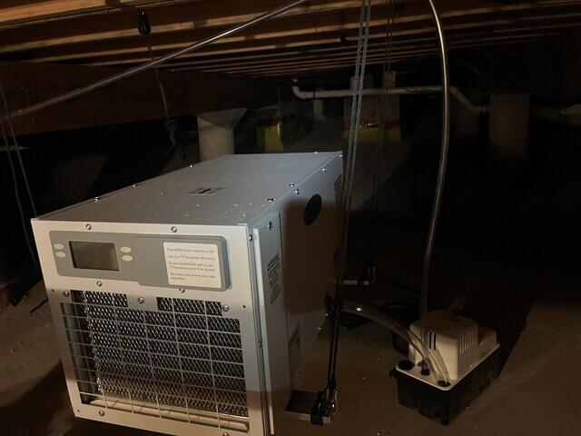 Our team installed the CleanSpace crawl space encapsulation system along with three SaniDry Sedonas to lower the humidity. We also installed the SmartSump pump system to move moisture from rain and the dehumidifiers out of the crawl space.