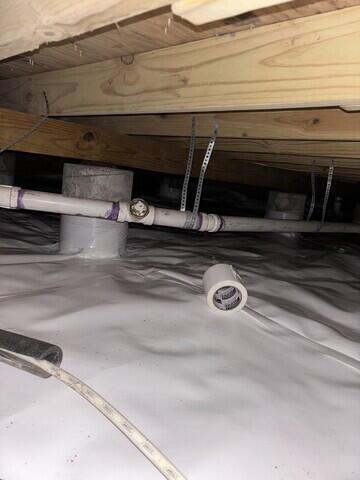 Due to a plumbing pipe burst, this homeowner's crawl space flooded with water. He contacted us to help. We began by drying the crawl space. Afterward, the homeowner decided to have his crawl space encapsulated to prevent any more pipe bursts due to cold weather. We installed an encapsulation system for him, complete with a CleanSpace drainage mat, CleanSpace liner, sump pump, and dehumidifier.