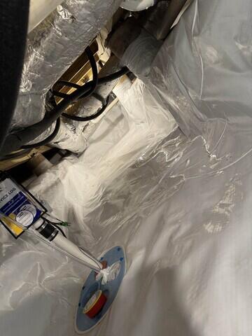 We installed a CleanSpace encapsulation system as well a SaniDry Sedona dehumidifier to prevent humidity from staying stuck in the space. We also installed a SmartSump pump system to remove standing water and moisture from the crawl space.