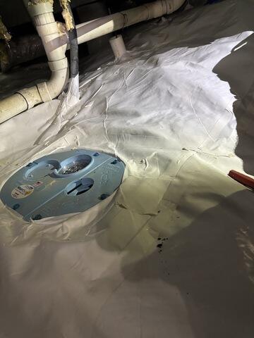 Our team installed the CleanSpace crawl space encapsulation system along with three SaniDry Sedonas to lower the humidity. We also installed the SmartSump pump system to move moisture from rain and the dehumidifiers out of the crawl space.