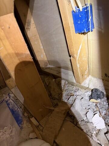 Once we enclosed the area for the safety of the air quality, we removed the mold damaged wall and cleaned the space with a HEPA vacuum as well as an EPA registered antimicrobial solution.