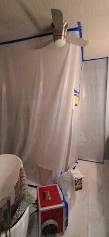 These photos are from a mold remediation job completed in North Richland Hills, TX by Olympic Restoration Systems. We were contacted after a homeowner who had mold growth in 3 of their bathrooms in their home. They had mold growth confirmed by a licensed mold inspector and needed a licensed mold remediation company. Our Production Team safely and efficiently remove the mold-damaged drywall, tile, insulation, and flooring from the area. In the pictures, you can see where they set up containment and used HEPA vacuums to ensure that mold and other pollutants did not circulate throughout the home during the mold removal process.