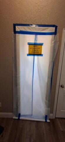 These photos are from a mold remediation job completed in Hurst, TX by Olympic Restoration Systems. We were contacted after a homeowner had mold growth confirmed by a licensed mold inspector and needed a licensed mold remediation company. Our Production Team was able to safely and efficiently remove the mold-damaged material and flooring from the unit. In the pictures, you can see where they set up containment and used HEPA vacuums to ensure that mold and other pollutants did not circulate throughout the home during the mold removal process.