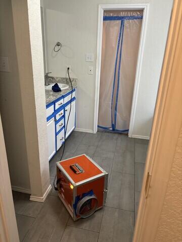 Our Licensed Technicians were equipped with the required personal protective equipment for the hazardous clean up that was going to be necessary once the affected materials were removed. Each Technician had a fresh set of personal protective equipment for the morning and the afternoon, for each day that they were working. We hauled off and properly dispose of all debris. We set up a containment Barrier/Airlock/Decontamination Chamber. We installed the necessary erected zippered poly doorways, walls and/or flaps and critical barriers as required to strategically separate the mold affected area from the rest of the laundry room and home. We removed the laundry, standard grade single basis sink. We removed and saved the kitchen sink. We removed one lower base cabinet. We tore out the lower, affected drywall within the laundry room, adjacent to the hall bathroom and prepared it for disposal, and cleaned up the area. We used a HEPA vacuum to the exposed wall cavity, as well as the entire contained area, including the walls and the ceiling. We wiped down all the exposed wall cavity surfaces, all the water damaged drywall surfaces that could not be removed, and all the HVAC stand surfaces with an EPA-approved anti-microbial disinfectant solution. All the anti-microbial disinfectant solution used was designed to neutralize and inhibit any further growth of microbial bacteria. The anti-microbial disinfectant solution was not used in any manner inconsistent with the manufacturer’s recommendations for application. The wipe down process was done using a top down motion, using a clean side of a rag each time. We used an 8-fold system for a more efficient process. We set up a negative air fan/air scrubber for a 24-hour period. We installed no monitor air scrubbers inside of the containment or five days. We set up a no monitor air scrubber for 5 days. They were turned on at the start of the remediation process and they were left running until the clearance results are received from a Licensed Mold Inspector. Once the remediation work was complete, the air scrubber needed to run approximately 48 hours before the post remediation clearance inspection could be performed by the Licensed Mold Inspector.