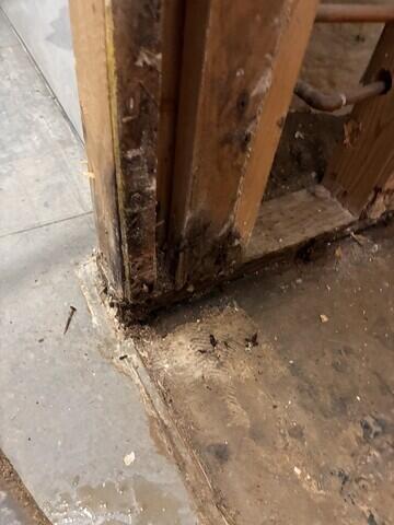 Due to improper yard drainage, water had been damaging these homeowners wood floor. When they went to replace it, they noticed mold. They contacted our team to help. We began by setting up a containment area with negative air scrubbers. Then, we removed all affected materials. Using an EPA registered antimicrobial and HEPA vacuum, we remediated the mold.
